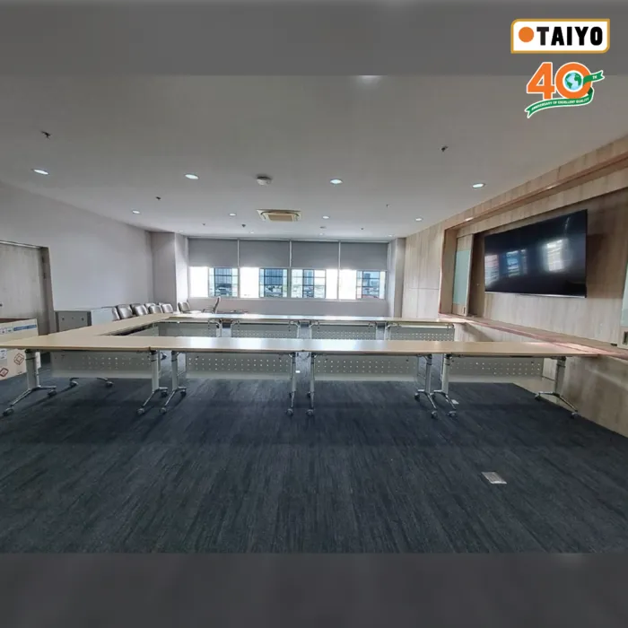 ไทยไทโย ขอขอบพระคุณ บริษัทกาญจนชาติ ตัวแทนจำหน่ายไทโย จังหวัดนนทบุรี ที่นำเสนอ โต๊ะพับเอนกประสงค์ Hybrida by Taiyo รุ่น HB-GTF02-1660 ขนาด 1600 × 600 × 750 มม. จำนวน 10 ตัว สำหรับใช้ใน ห้องประชุมอำนวยการ สถาบันจิตเวชศาสตร์สมเด็จเจ้าพระยา สังกัดกรมสุขภาพจิต กระทรวงสาธารณสุข